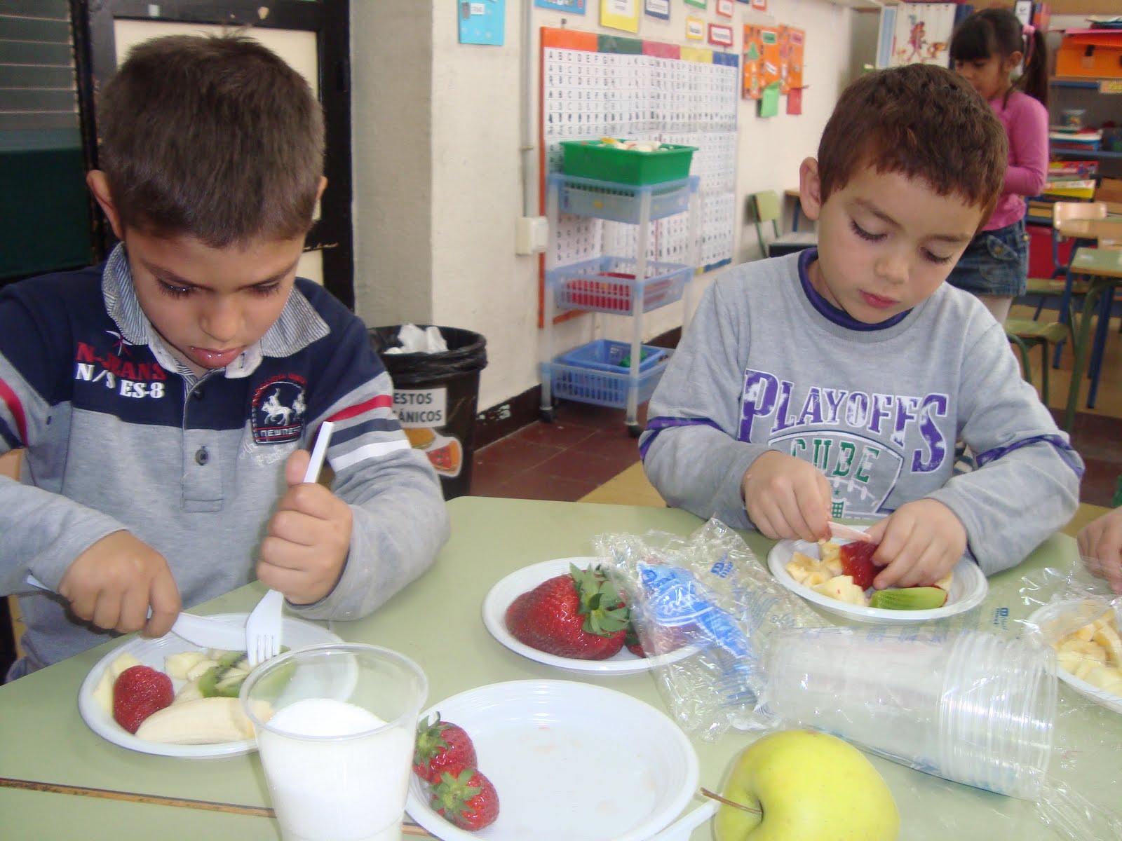 Este día tan especial, la fruta fue la gran protagonista, muchos niñ@s se atrevieron a probar frutas que nunca antes habían comido, y se sorprendieron al comprobar que les gustaba. Para las seños de 5 años, esta actividad relacionada con la alimentación sana, fue muy importante para el proyecto del cuerpo humano y como hay que cuidarlo.